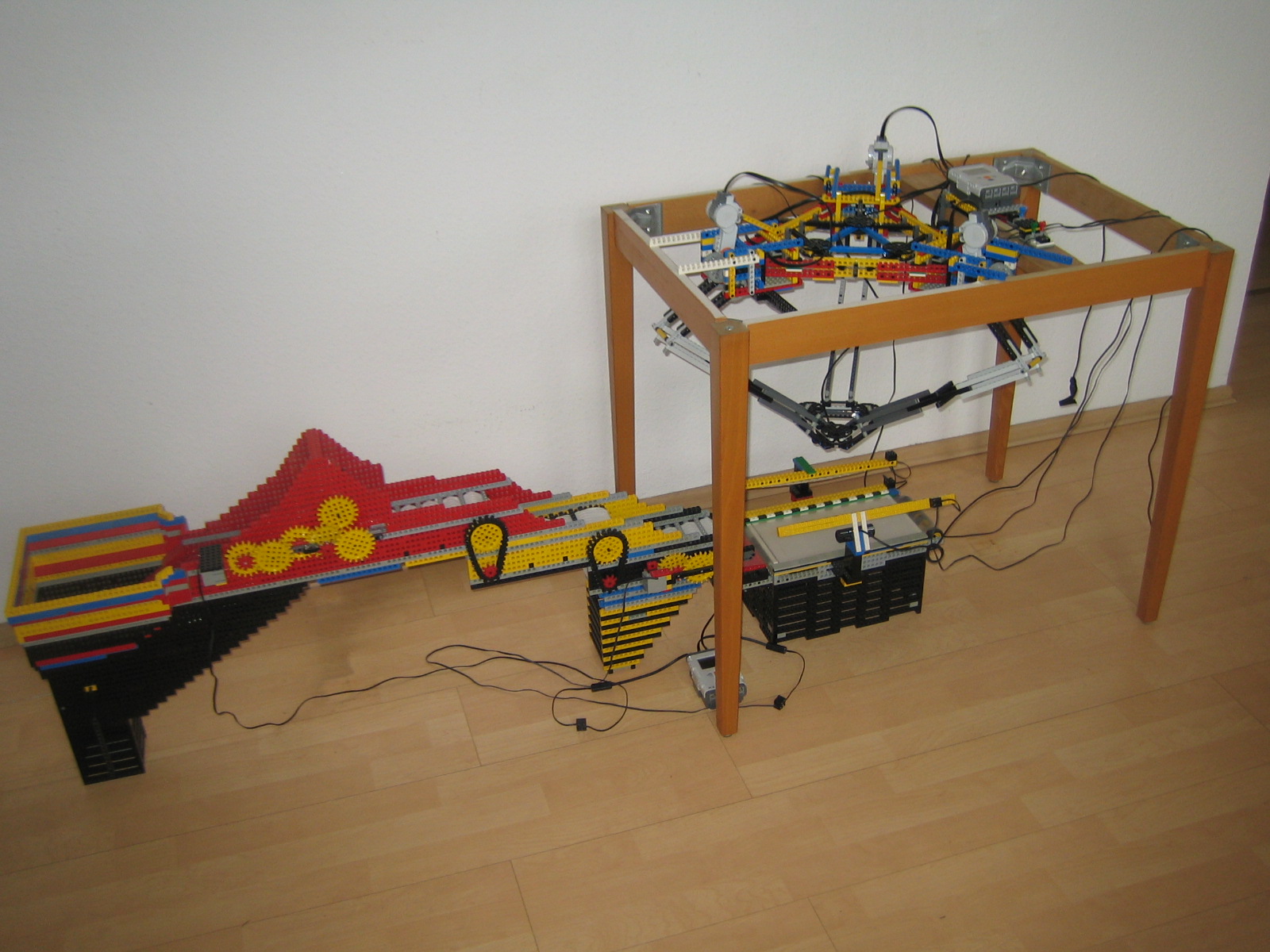 - all the conveyors described so far are controlled by one Mindstorms NXT, communicating to a Linux PC by Bluetooth