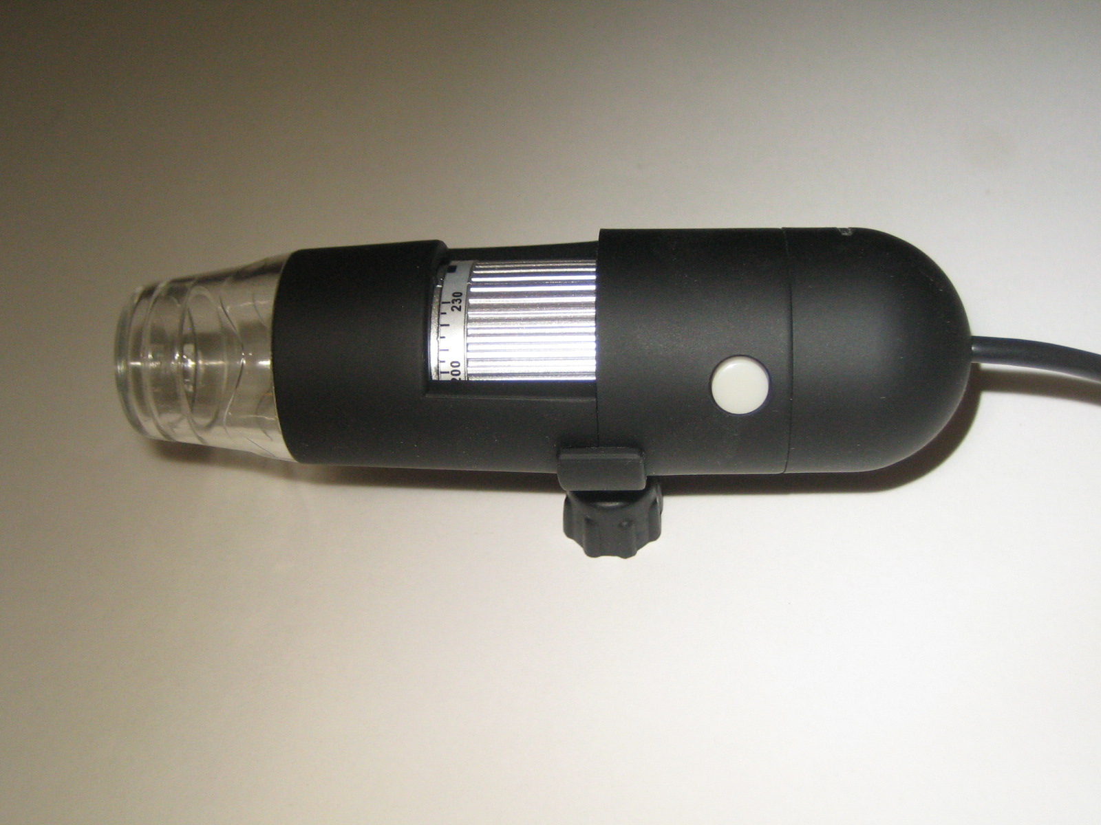In fact, the description "microscope" (and for that matter "zoom 20-200") is entirely misleading. This camera can indeed zoom in to objects by 20x to 200x, but only in combination with adjusting the focus, therefore things close to the camera (such as touching the end of the clear plastic lens / LED illumination protector) are magnified approximately 20x when they're in focus, and objects far away ("infinity" as far as the camera is concerned, but 2+ metres in reality) are magnified by about 200x.